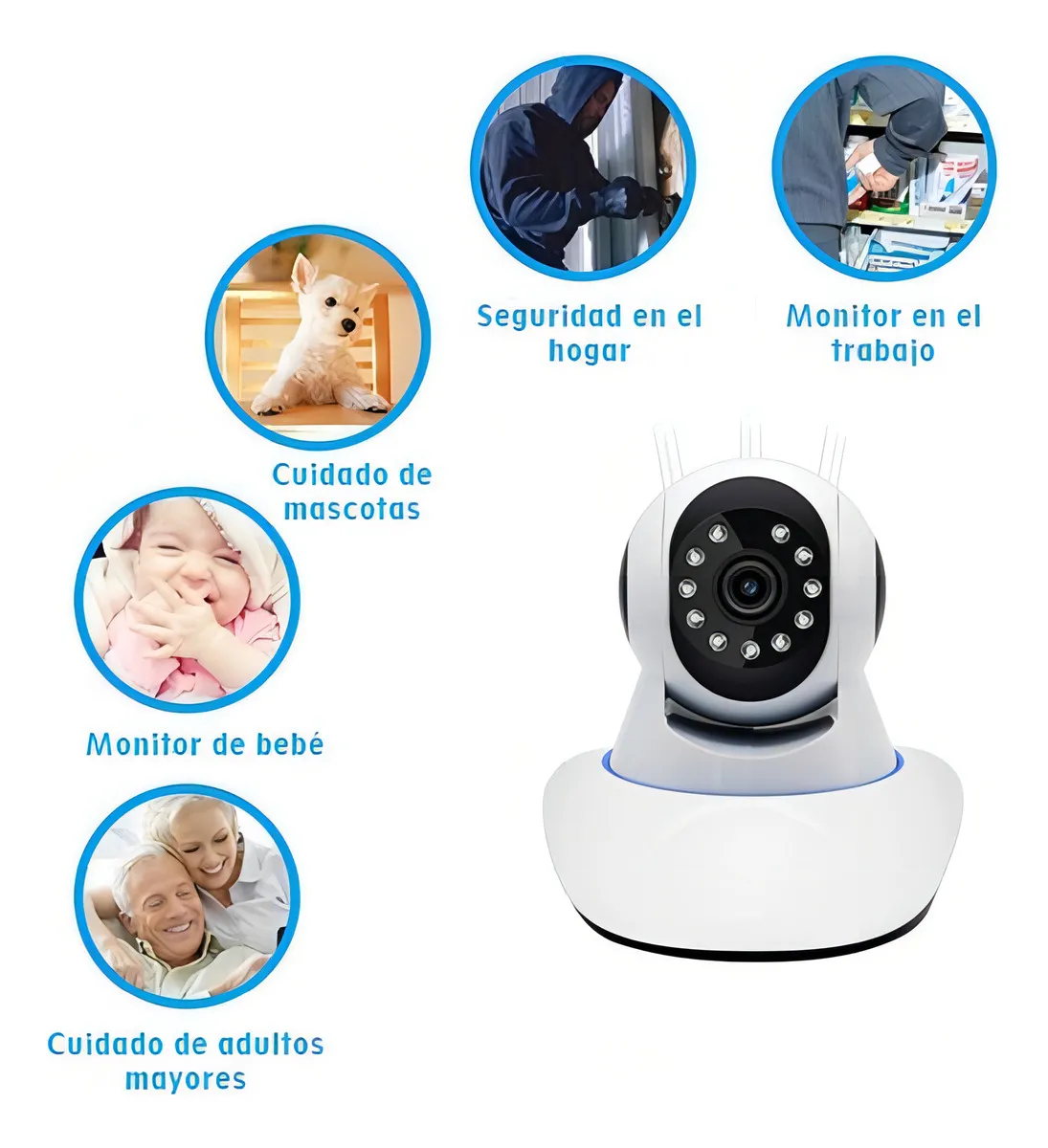 Protege tu hogar, negocio u oficina con la Cámara de Seguridad WiFi 360° Full HD 1080p, una solución moderna que combina diseño, potencia y tecnología de vigilancia inteligente.